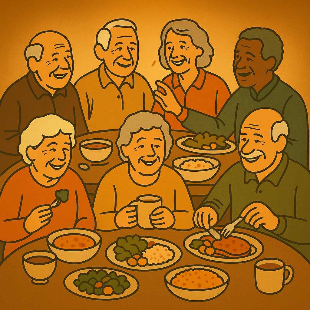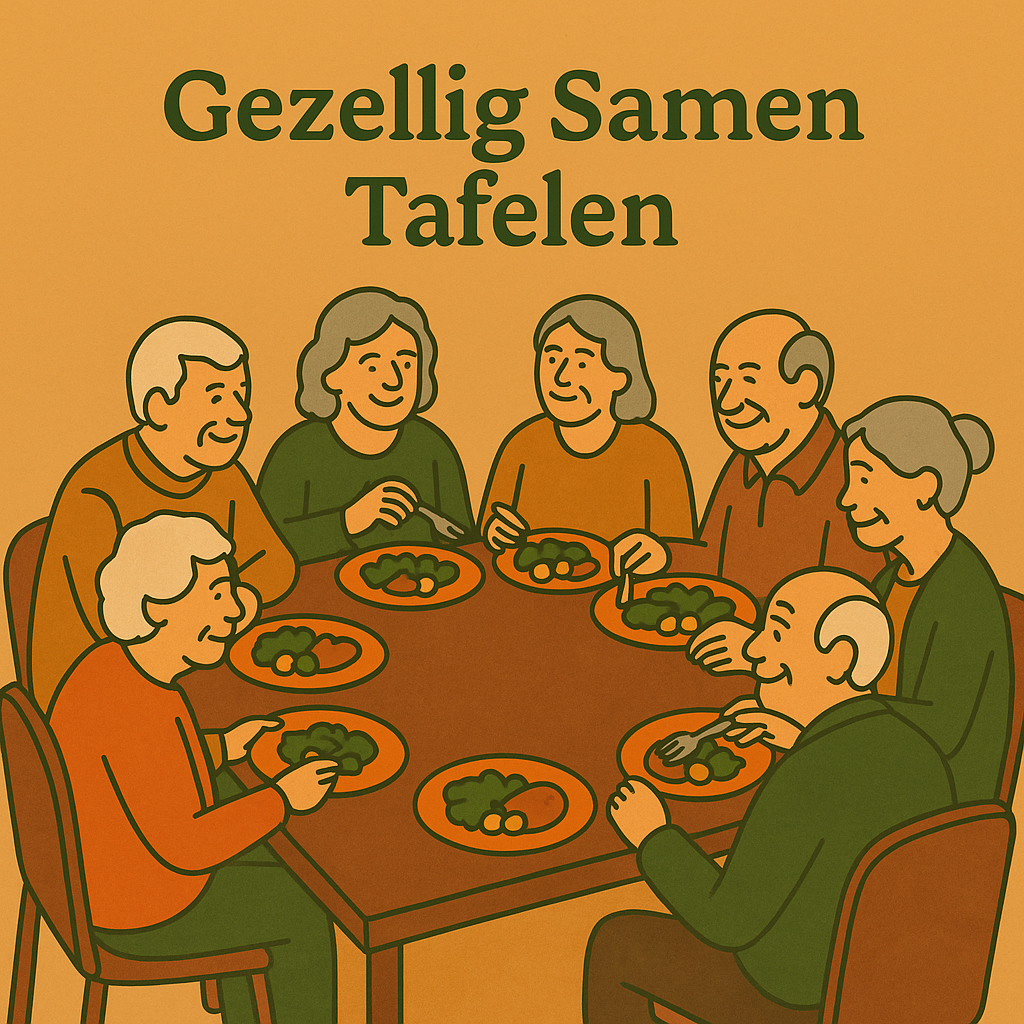 In een warme en gezellige setting brengen we mensen samen aan tafel, waar ontmoeting, structuur en goed eten centraal staan.